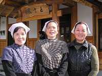 「我が家より、春山桜、秋紅葉、夏畠青く、冬の雪山」年中家の周囲では、春から初夏にかけては、梅、李、桃等の果樹の花や草花が咲き、秋から冬には柿や柚子の実が黄色に染まり、お客様を待っています。