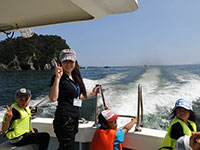 定置網漁を体験し、船上で取れ立て魚の刺し身などをいただく。※お土産付き。午後は2コースの中から選択できる。「クルージングor釣り」「かめんこ号」