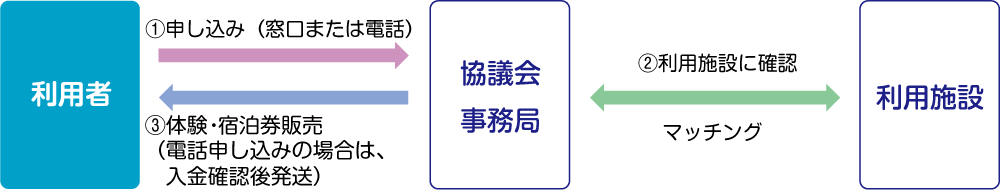 - 農山漁村の体験および宿泊のいずれの場合も、必ず事前の予約が必要となります。直接施設に予約する際には、体験・宿泊券利用の旨をお伝えください。